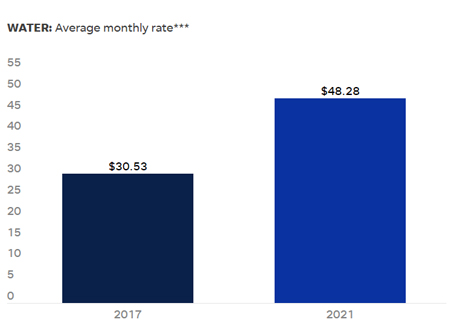 That’s much higher than five years ago. The usage, meter and fire protection rates have all increased since 2017, when using 5,000 gallons would have only cost you about $30.53. That's a 58% increase since 2017. Thanks to a slightly higher fire protection surcharge for county residents in 2017 that no longer exists in 2022, their 2017 rates would have been $31.66.