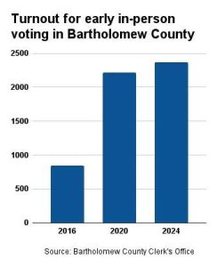 Bartholomew County Republican Party Chair Luanne Welmer said she thinks the rush to vote early may be related to voters being “passionate about the presidential race,” though the school board and county council races also are drawing interest.