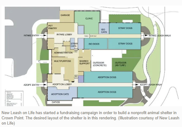 Pace is the founder and CEO of New Leash on Life, which will be a nonprofit pet adoption and resource center, set to open in Crown Point. The project has been underway for about a year, she said, and she’s been working with city officials and an architect on the concepts of the business.