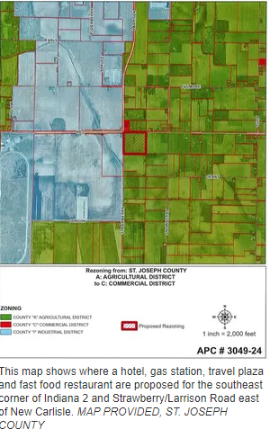 But, before the hotel and other services can happen, the St. Joseph County Council will have to approve rezoning that 40-acre patch of farmland at Indiana 2 and Strawberry/Larrison Road.