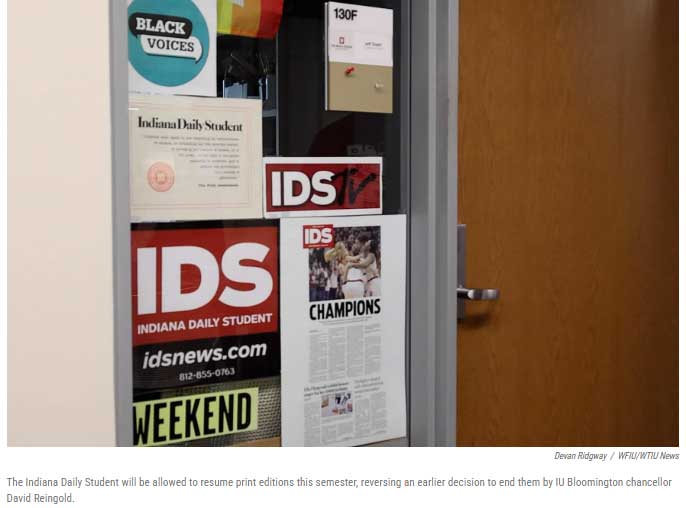 The student media plan does call for limiting print to a few special editions per semester, but it also calls for preserving the IDS print product as a “critical learning experience for student media workers.”