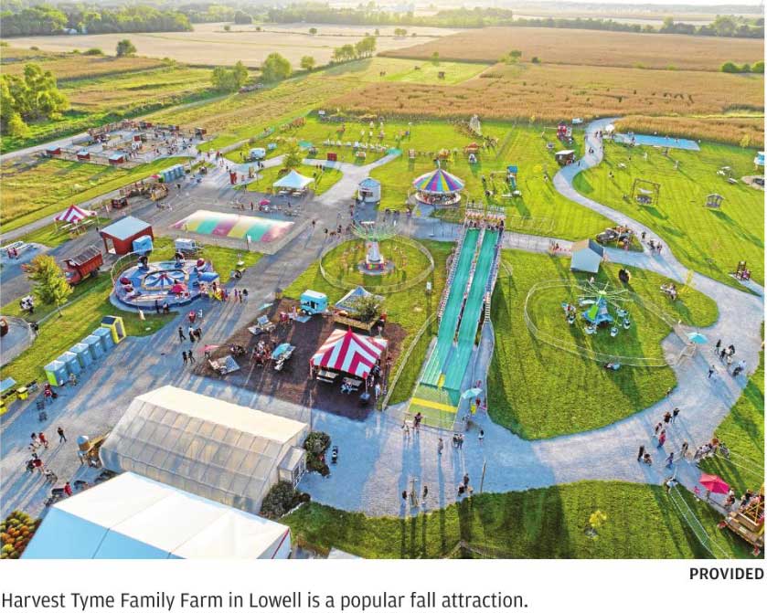Josh Sickinger first started offering the public a pumpkin patch with hayrides at Harvest Tyme Family Farm in Lowell 18 years ago. The farm's annual Fall Festival has exploded in popularity to where it includes 30 attractions, 10 amusement rides, a 3-acre corn maze, a petting zoo and a Pumpkin Glow Trail.