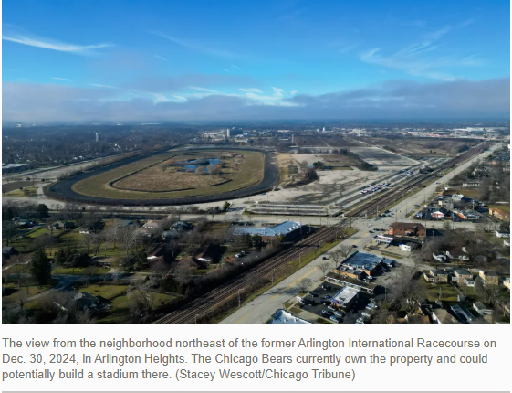 The Chicago Bears purchased the former Arlington International Racecourse in Arlington Heights in February 2023 and hopes to build a new enclosed stadium with a big entertainment and residential development. In December, the Bears and Arlington Heights reached an agreement to set taxes at $3.6 million per year.