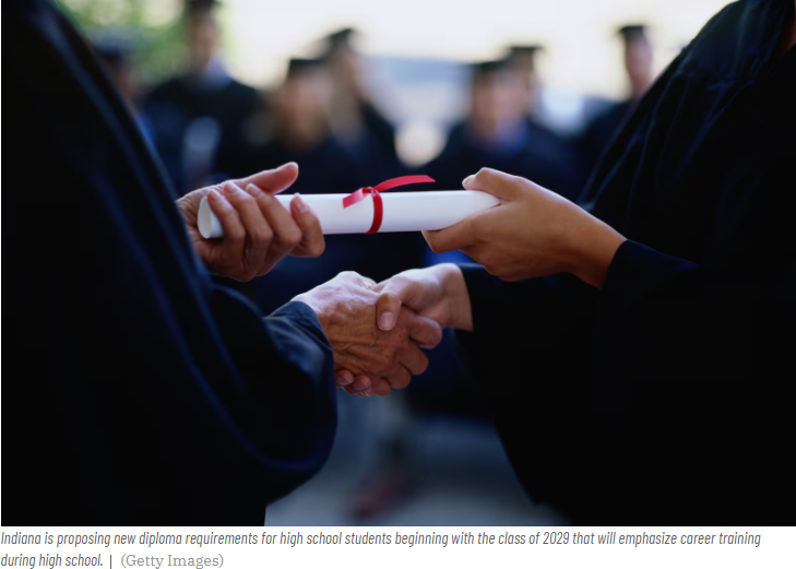 The plan would offer Indiana students beginning with the class of 2029 two diploma options, one of which resembles today’s graduation requirements but with less advanced math and social studies, and another that would require significantly more work experience.