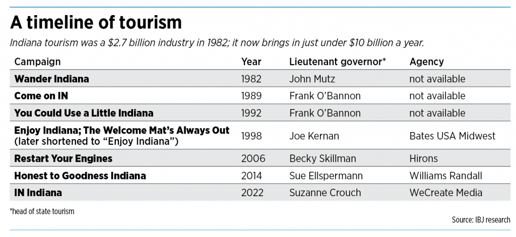 Bedel said the committee that oversaw development of the new campaign didn’t consider building on past slogans—including “Honest to Goodness” or the 1980s tagline, “Wander Indiana”—because it was clear they didn’t work.