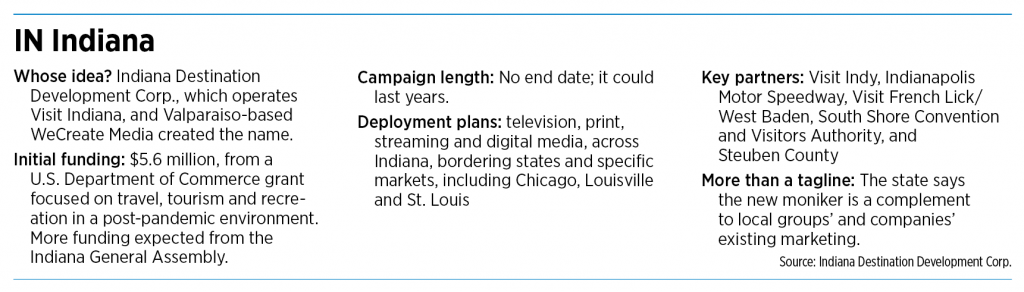 She said the IN Indiana campaign, which the state created alongside Valparaiso-based WeCreate Media, isn’t just a good approach to short-term efforts but also has long-term potential because of its simplicity.