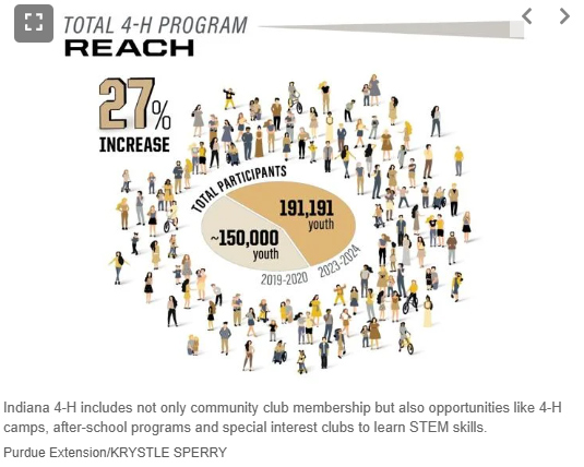 Grants from partner organizations have also helped 4-H to grow in new ways. For example, programs funded through Lilly Endowment Inc. bring 4-H into classrooms while partnerships with National 4-H Council and the Indiana 4-H Foundation have fueled programming related to STEM and AI.