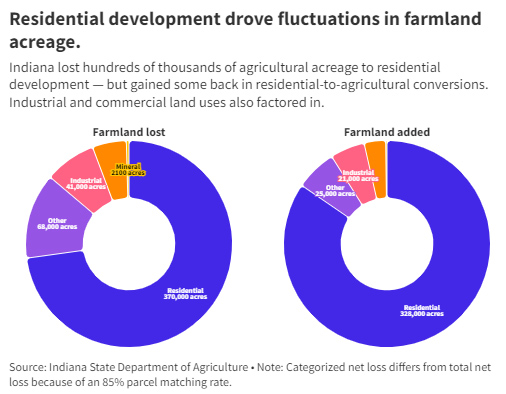 Most of it was lost to residential development around the edges of cities and suburban areas, according to the Indiana State Department of Agriculture (ISDA).