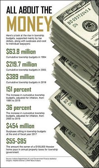 Brinegar noted a previous chamber study showing townships hoarded more than $200 million in reserve funds that could go into other services or provide taxpayer relief. Actually, Indiana's townships had a cash balance of more than twice that amount -- $454 million -- at the end of fiscal year 2017.