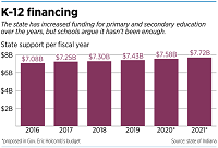 Gov. Eric Holcomb’s proposed two-year, $33.8 billion budget calls for an additional 2 percent in K-12 funding per year. And at his State of the State speech on Jan. 15, Holcomb said the state will pay off some teacher pension liability that will free up $70 million in each of the next two years for schools.