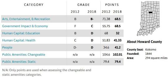 Howard County’s grades in the Ball State study did improve in two areas: government impact and economy (F to C) and people (D- to D).