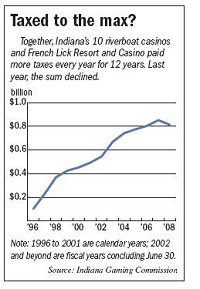 Casinos have swelled into a $2.7 billion industry here-one that paid $838 million in state and local taxes last year and ranked as the third-largest revenue source in the Indiana budget. That tax take has risen 126 percent over the past decade.