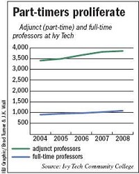 A 2006 study by the University of Texas called for Ivy Tech to boost the number of full-time professors to half the total faculty. But trends are still moving the other way.