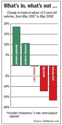 Edmunds said recent activity amounts to a "seismic shift" to smaller segments. But even earthquakes have their precursors, and Tom Kontos started noticing quivers at auction shortly after Hurricane Katrina in 2005, when gasoline prices briefly spiked around $3 a gallon.