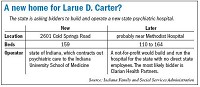 State officials are advancing plans to privatize a state-run hospital for the mentally ill and now are looking for a not-for-profit to build and manage a new facility in Indianapolis. They may not have to look far. Although a request for proposals just went out, Family and Social Services Administration Secretary Mitch Roob said he's already hashed out preliminary plans with Indianapolis-based Clarian Health Partners. Roob's vision is to create a facility that's part of a research-intensive neuroscience center next to Methodist Hospital-a focus shift that could force patients who need to be hospitalized for more than six months to be moved to other state hospitals. "There may be better ideas than the ones we have created," Roob said. "But I believe the [hospital] will end up being at 16th and Capitol Avenue and Clarian would develop a research facility around it as well." If he's right, Larue D. Carter Memorial Hospital would be the second such facility to be privatized, behind Richmond State Hospital. And moving the hospital to Clarian-owned land would free up prime property developers have been eyeing. Talks about moving Larue Carter have dragged on for years, as officials looked for an alternative to the current leased facility in a former VA Hospital at 2601 Cold Spring Road. In 2004, the state bought a 19-acre undeveloped site along Indiana Avenue-at the north end of what has become a booming biotech corridor-and planned to move the 159-bed hospital there. But Roob wants more than a new home for the facility that houses Medicaid patients with severe mental illnesses. He wants a new mission. Under his vision, Larue Carter would be part of a center widely known for its diagnostic skill and research prowess-enough so that privately insured patients, experts and students from across the nation would flock to it. "We want it to be an integral part of the expansion of medical research opportunities and teaching opportunities at the IU School of Medicine," Roob said. Indiana University's med school psychiatrists and psychologists already treat patients and conduct research at Larue Carter, but integrating the hospital into a broader center would increase its focus on research. Medicaid patients would stay at the facility 30-180 days for intensive diagnosis and work to balance medications, down from the current average 270-day stay. Under the new setup, patients who need to be hospitalized for more than six months likely would be transferred to state hospitals in Richmond, Logansport or Evansville. To make the transition, the state wants a not-for-profit to build and manage a new facility. And since the idea is to strengthen the hospital's relationship with the IU School of Medicine, a new location would need to be either on the IUPUI campus or a quick People Mover-hop away, next to Methodist Hospital. The state put out a call for bids Jan. 9, asking for proposals for a 207,000-square-foot hospital, a 90,000-square-foot research facility, a 206,500-square-foot medical office building, and a 1,500- to 2,000-spot parking garage. Roob said he's open-minded about proposals, but already has talked with the IU School of Medicine and Clarian about the project. He said he wants construction to begin by the end of 2007 and have the hospital move in within three years. Clarian spokesman Jon Mills was noncommittal about the hospital's role, confirming that the health care system has talked with the state but declining to say whether Clarian will submit a bid. Proposals are due Jan. 29. But the head of IU's Department of Psychiatry supports the plan. A new center would let the school capitalize on investments it has made recently in its neuroimaging programs, including luring a new faculty expert from Dartmouth College, said psychiatry Chairman Christopher J. McDougle. "No matter who would run the new Larue Carter, it would be imperative for the [School of Medicine] to stay very involved," he said. The hospital, which has a 45-person waiting list, gets its medical staff from IU. About 400 state employees attend to daily nursing and needs. Privatization with no push back? While other attempts to privatize state hospitals have met with resistance from employee groups and patient advocates, that doesn't seem to be the case yet locally. Gov. Mitch Daniels canceled the collective bargaining rights of the AFSCME government employees union shortly after taking office in 2005, and the beleaguered local branch-Council 62-has had little success fighting privatization efforts ever since. "This is just more of the same from [the Daniels] administration to privatize all services provided to the neediest Hoosiers," Council President David Warrick said of the Larue Carter plans. But some patient advocates appear to be on board. Stephen McCaffrey, CEO of Mental Health America of Indiana, heard of the plans in his role as the chairman of an FSSA advisory committee. He said specialization is of enough value to patients to offset other trade-offs, such as making longer-term patients move to other facilities. Only a small subset of Medicaid patients with mental health issues--about 1,100 statewide-end up in state hospital care, he said. And they require a great amount of expertise to diagnose and stabilize. "It's very difficult in my opinion to get that level of expertise at every state hospital," he said. "My fear is that, in trying to do that, you end up with a bunch of general hospitals without the expertise needed in any of them." Having a "top notch" facility capable of dealing with the new research on medication and other treatments makes sense, he said, and it requires different skills from long-term care. Musical sites If the move happens, it would leave Larue Carter's current site-a 30-acre, 12-building former VA Hospital complex-vacant. The state leased the property from the U.S. Department of Veterans Affairs in 1995 under a $10 million, 35-year contract. State officials started to make plans for a new Larue Ca