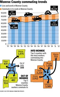 A total of 15,613 people lived outside of Monroe County and traveled into it to work in 2012, according to the data, which was released this week by the Indiana Business Research Center. That’s 18 percent of the 88,144 people working in the county.
