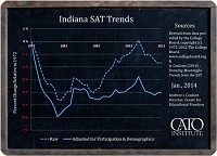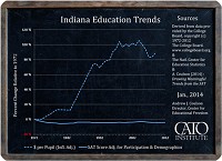 In the 2001-2002 school year, for instance, there was a negative correlation of -0.00321 between spending per pupil to SAT (Scholastic Assessment Test) scores. There was a negative correlation of -0.18474 between spending per pupil to 10th-grade ISTEP (Indiana Statewide Testing for Educational Progress) passing rates. For the next school year, there was a positive correlation of only 0.009338 between spending and SAT scores and a negative correlation of -0.16391 between spending and 10th-grade ISTEP passing rates.