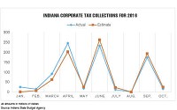 Corporate collections are $38.7 million (15.7 percent) below forecast year-to-date and $8 million (3.7 percent) below fiscal year-to-date collections through the same period, according to the Indiana State Budget Agency’s October revenue report.