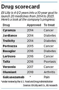 “We believe we are in the midst of the most prolific period of new launches in our company’s 140-year history,” then-CEO John Lechleiter told investors in May 2016. Lechleiter retired seven months later, but his successor, David Ricks, has kept up the “20 in 10” mantra.