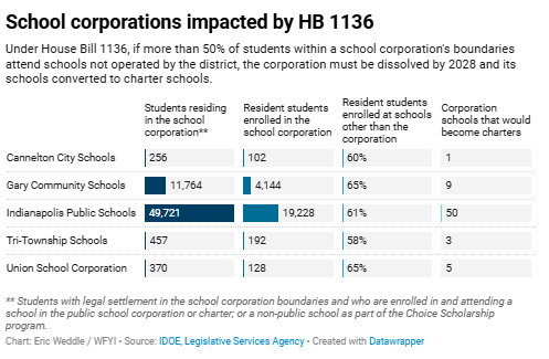 A Republican-backed bill could dissolve five Indiana school districts, including Indianapolis Public Schools and Gary Community Schools, sparking backlash from advocates and district leaders who argue the legislation unfairly targets high poverty and urban districts that primarily educate children of color.