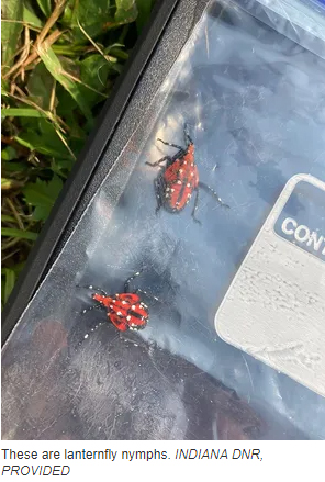 The lanternfly was discovered in Switzerland County in the southeast portion of the state in 2021 and in Huntington County in the northeast in 2022. It’s also been located at a parcel of property in Pontiac, Mich.