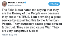 THE FAKE NEWS MEDIA IS THE OPPOSITION PARTY. It is very bad for our Great Country....BUT WE ARE WINNING! — Donald J. Trump (@realDonaldTrump) August 16, 2018