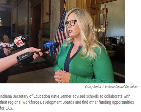 An update from Indiana education secretary Katie Jenner said the Department of Workforce Development’s budget maintains its contract with the JAG national organization, so existing programs such as Eastern Greene’s can continue through 2026.
