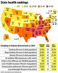 "We have to remember that these reports are just a snapshot and not the gospel of what is actually going on, but I am still a little disappointed with Indiana's ranking," said Penny Caudill, administrator of the Monroe County Health Department. "I'm always reminded of the quote that 'health is wealth.' Health is everything, so I'm disappointed we rank near the bottom in this ranking."