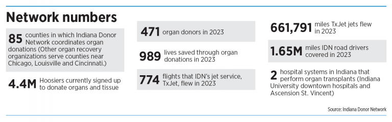 The Indiana Donor Network’s beefed-up staff of more than 300 is up from about 100 a decade ago. That includes a team of jet pilots and road drivers who scramble to get nurses and technicians to hospitals around the state to examine and transport donors back to Indianapolis.