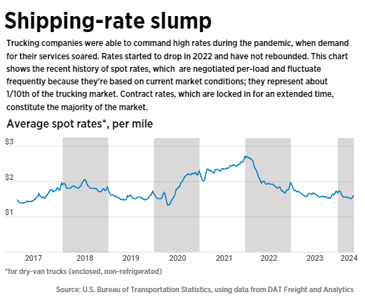 The boom times drew more companies into trucking, and in a classic case of supply and demand, that caused shipping rates to fall. Add in inflation and the trucking industry’s long-standing driver shortage, and carriers are now trying to weather a storm.