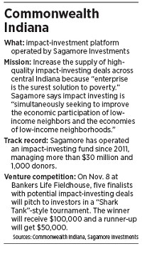 Enter Commonwealth Indiana, a new impact-investing platform run by Sagamore Investments LLC, an impact-investing company owned and operated by the not-for-profit Indianapolis think tank Sagamore Institute. An impact investment is one that creates both economic and social returns for investors.
