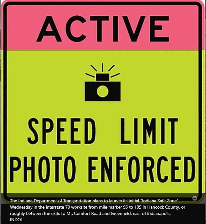 Motorists traveling a 10-mile stretch of Interstate 70 just east of Indianapolis next week will be the first to be subjected to Indiana's experiment with camera enforcement of worksite speed limits.