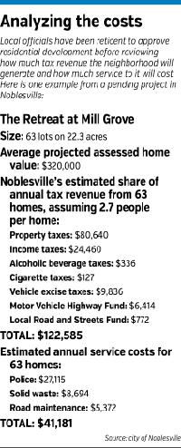 Last year, Langley and her staff in Noblesville started compiling a financial analysis for proposed housing developments to show what property taxes could be generated from estimated assessed values and what it would cost to provide city services to the subdivision.