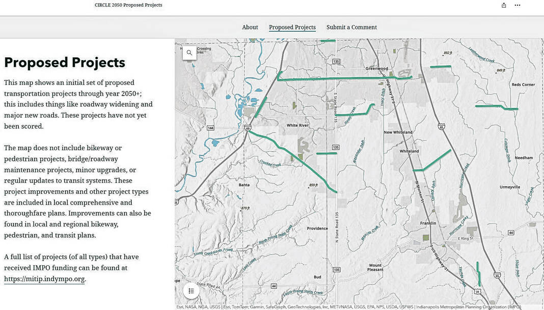Here’s a look at projects proposed for Johnson County as part of the Indianapolis Metropolitan Planning Organization’s CIRCLE 2050 metropolitan transportation plan update. All of these projects are conceptual, and no funds have been allocated at this time.